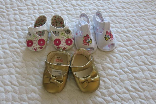 Predám capačky 3 kusy od 0-3 mesiacov. 100% stav, bez poškodení. Zlaté sú úplne nové, ešte aj spojené šnúrkov.